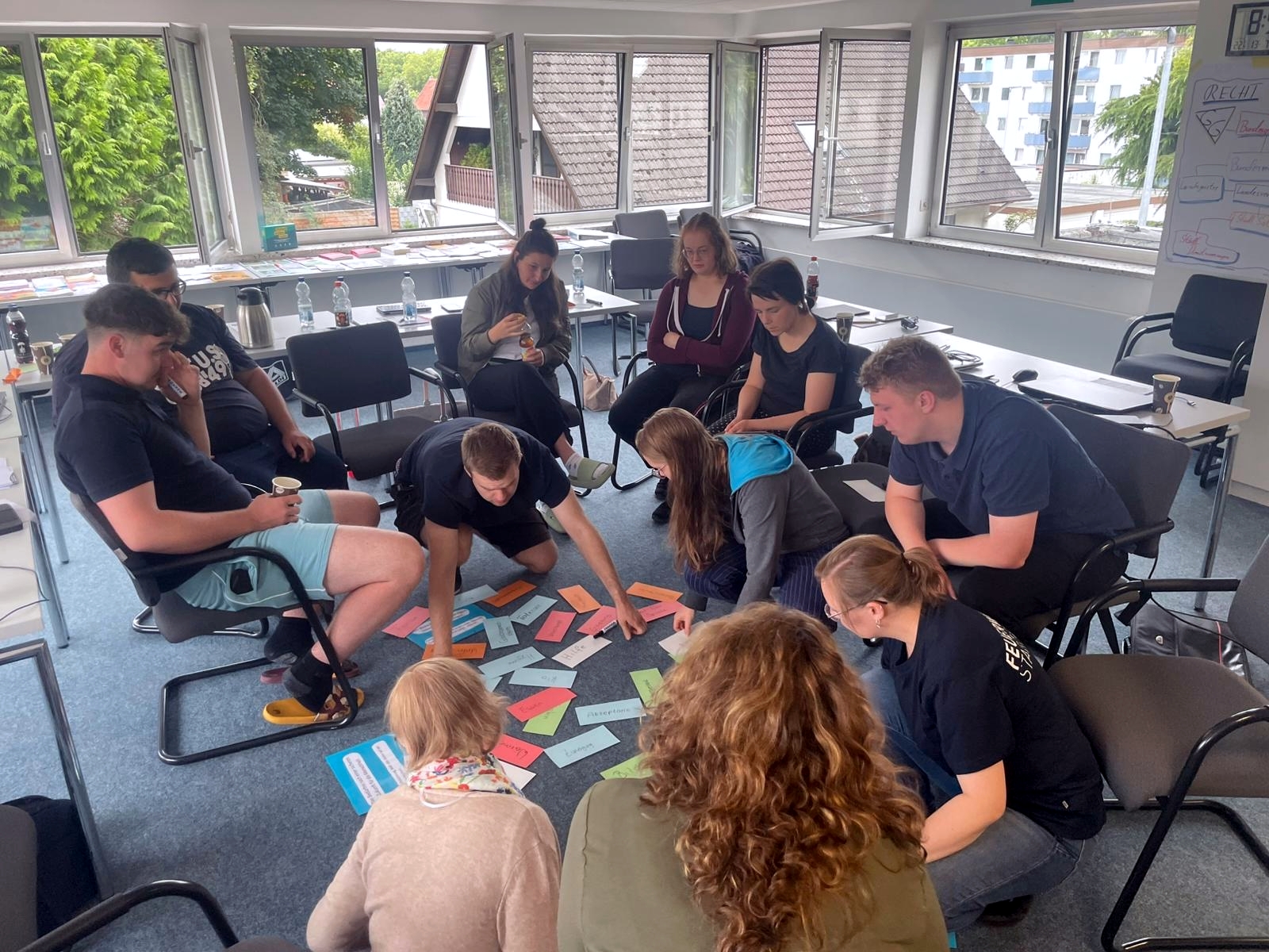 Der Samstag stand ganz im Zeichen der Vertiefung rechtlicher Kenntnisse (u. a. JuSchG und SGB VIII), der Struktur der Jugendarbeit sowie der Aufgaben und Pflichten eines Jugendgruppenleiters. Besonders praxisnahe Inhalte wie Aufsichtspflicht, Kinderrechte, Strafrecht und der Umgang mit Führungszeugnissen wurden ausführlich behandelt. Am Abend ging es um Kommunikation, Führungsstile und Feedbackmethoden – essenzielle Werkzeuge für eine erfolgreiche Gruppenleitung.