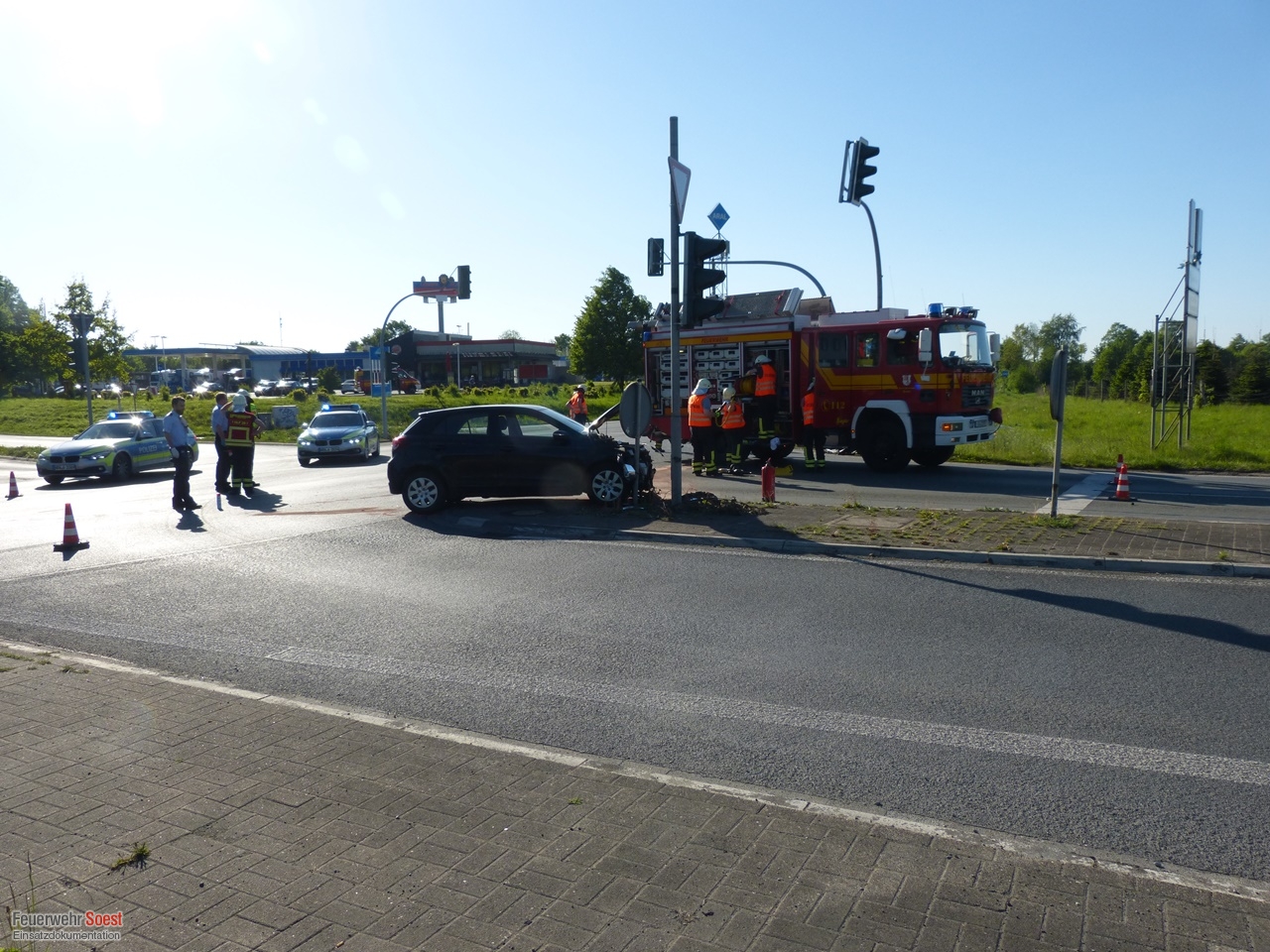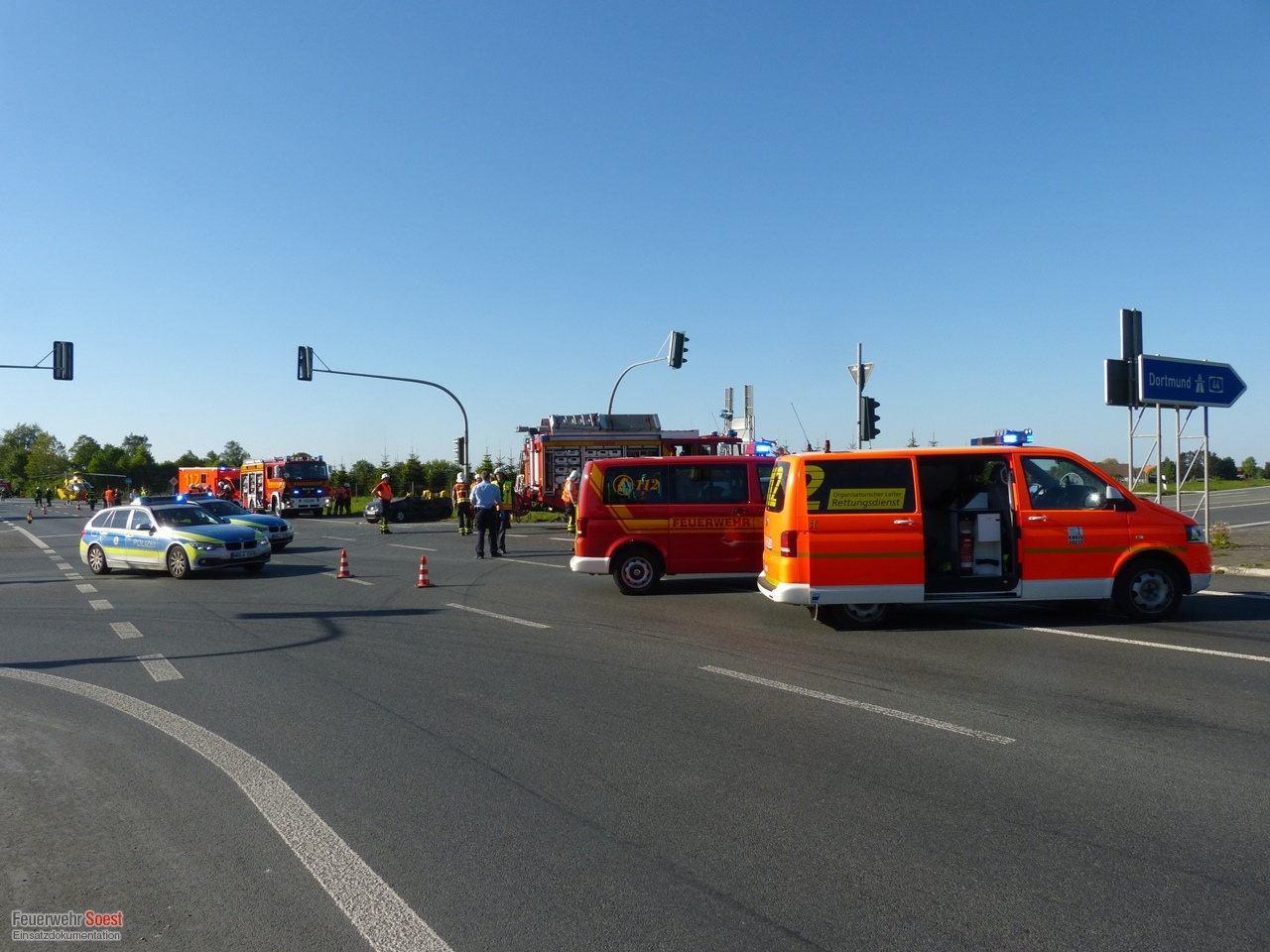 Verkehrsunfall an der Kreuzung zur A44 Soest-Ost alarmiert. Bereits auf