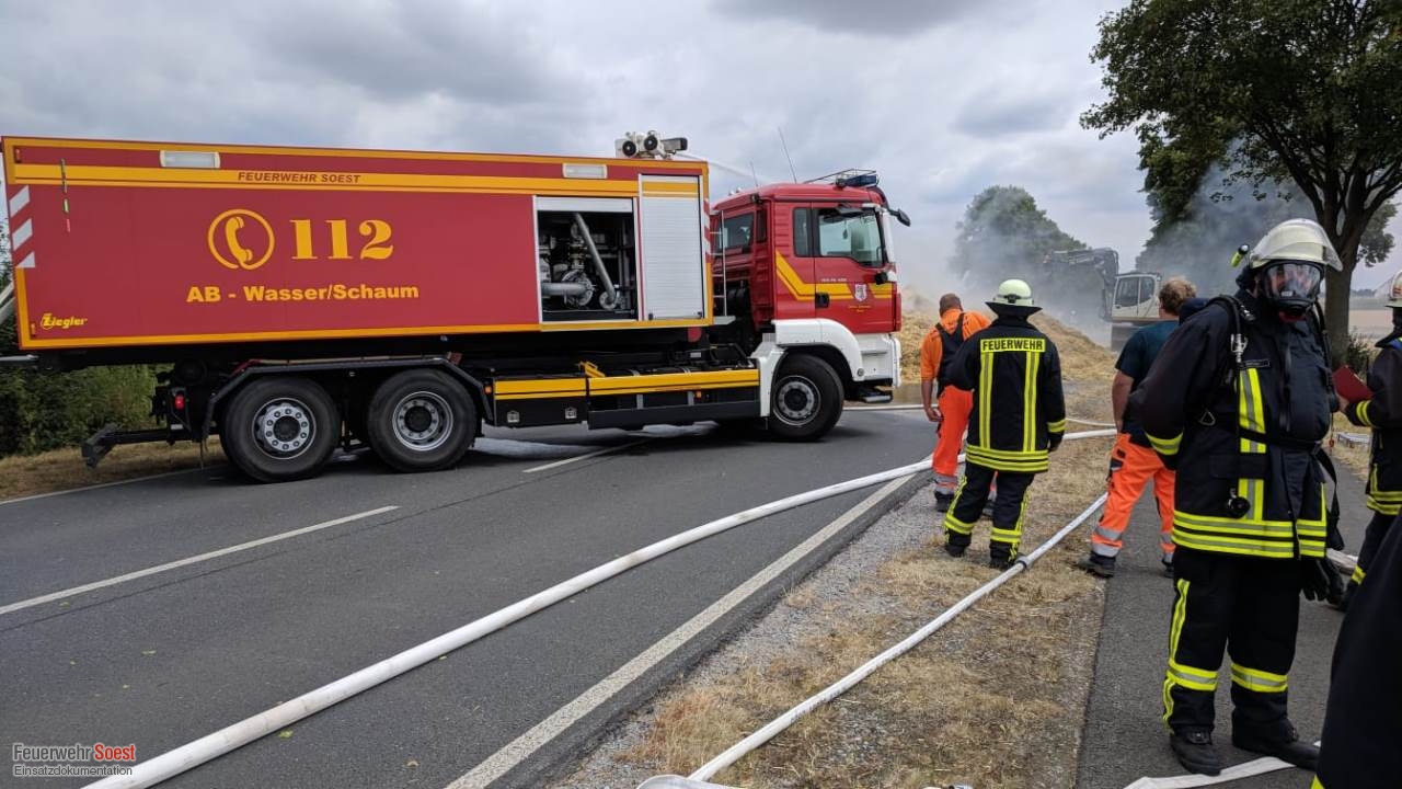 Die Feuerwehr Bad Sassendorf wurde bei dem Brand eines Strohtransporters unterstützt.