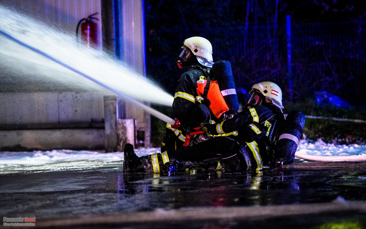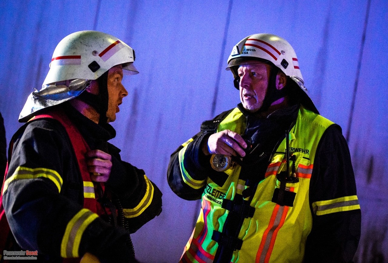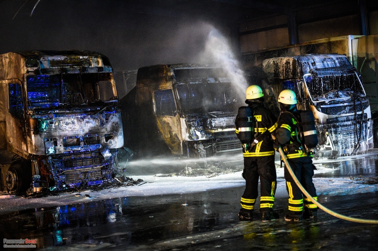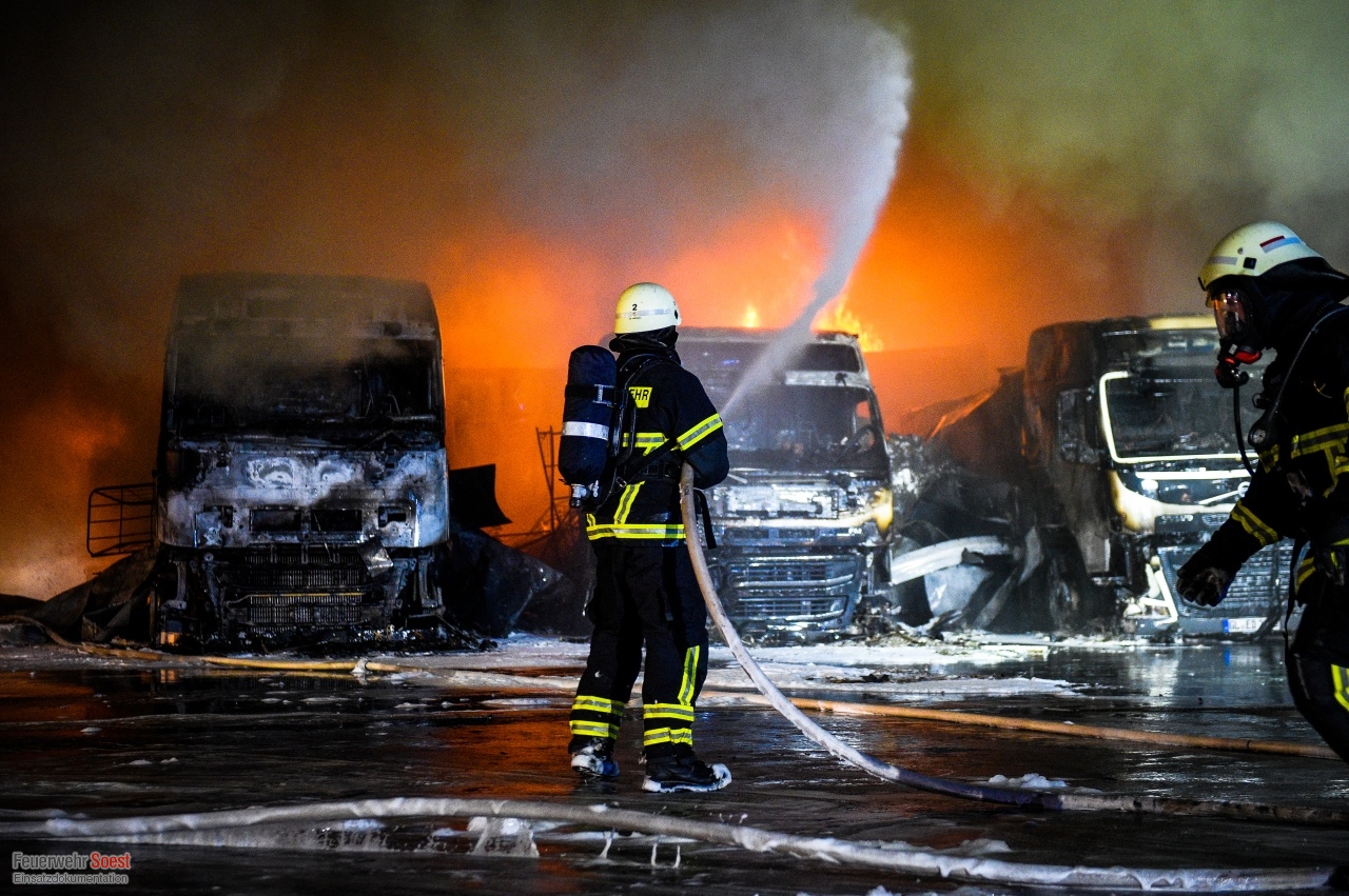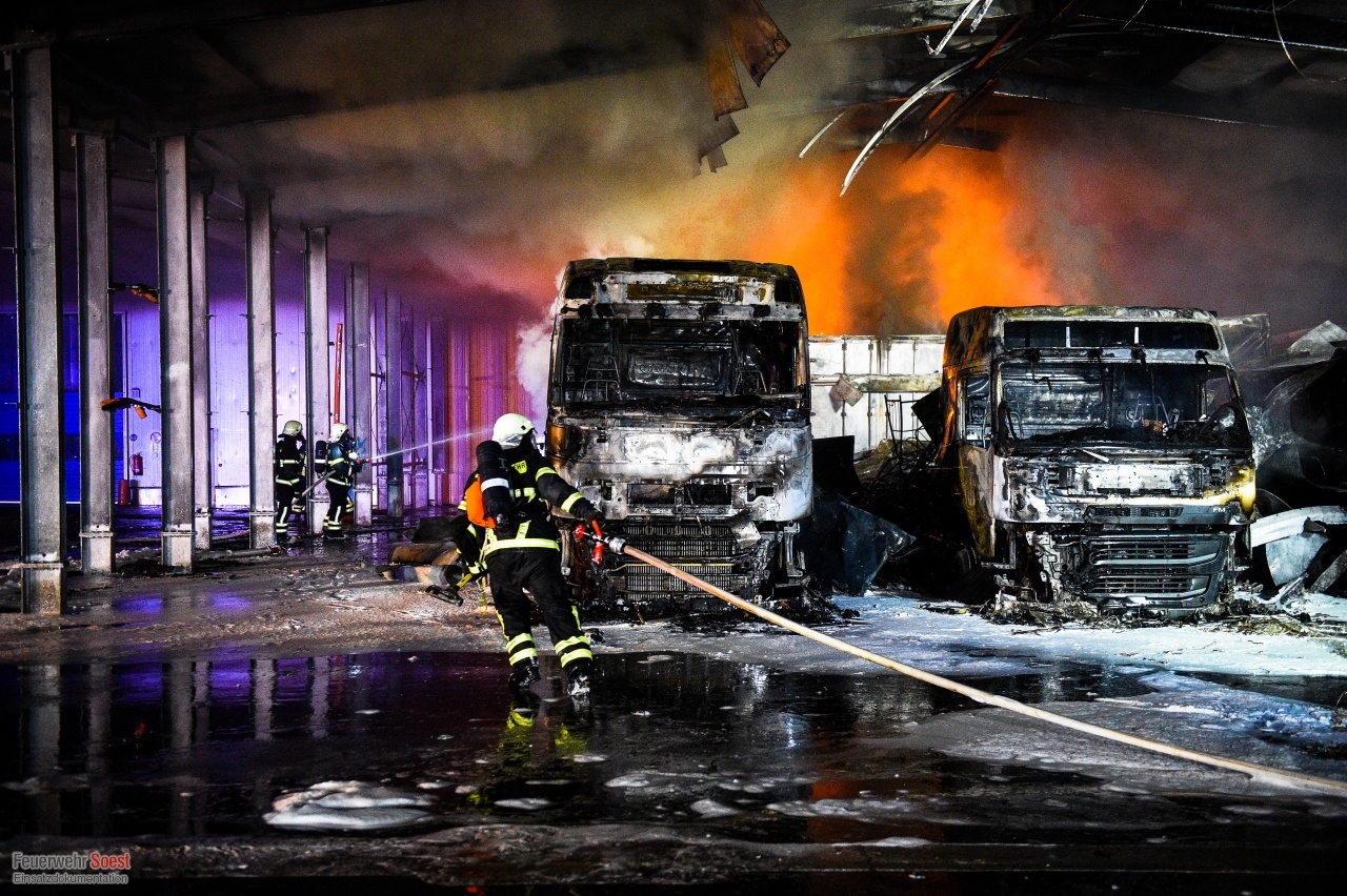 Da das Feuer schnell größer wurde und auch bereits auf die Halle übergriff, wurde Vollalarm für die Feuerwehr Soest gegeben. Dadurch wurden alle sechs Löschzüge alarmiert. Bedingt durch den Vollalarm wurden auch mehrere überörtliche Einheiten mitalarmiert.