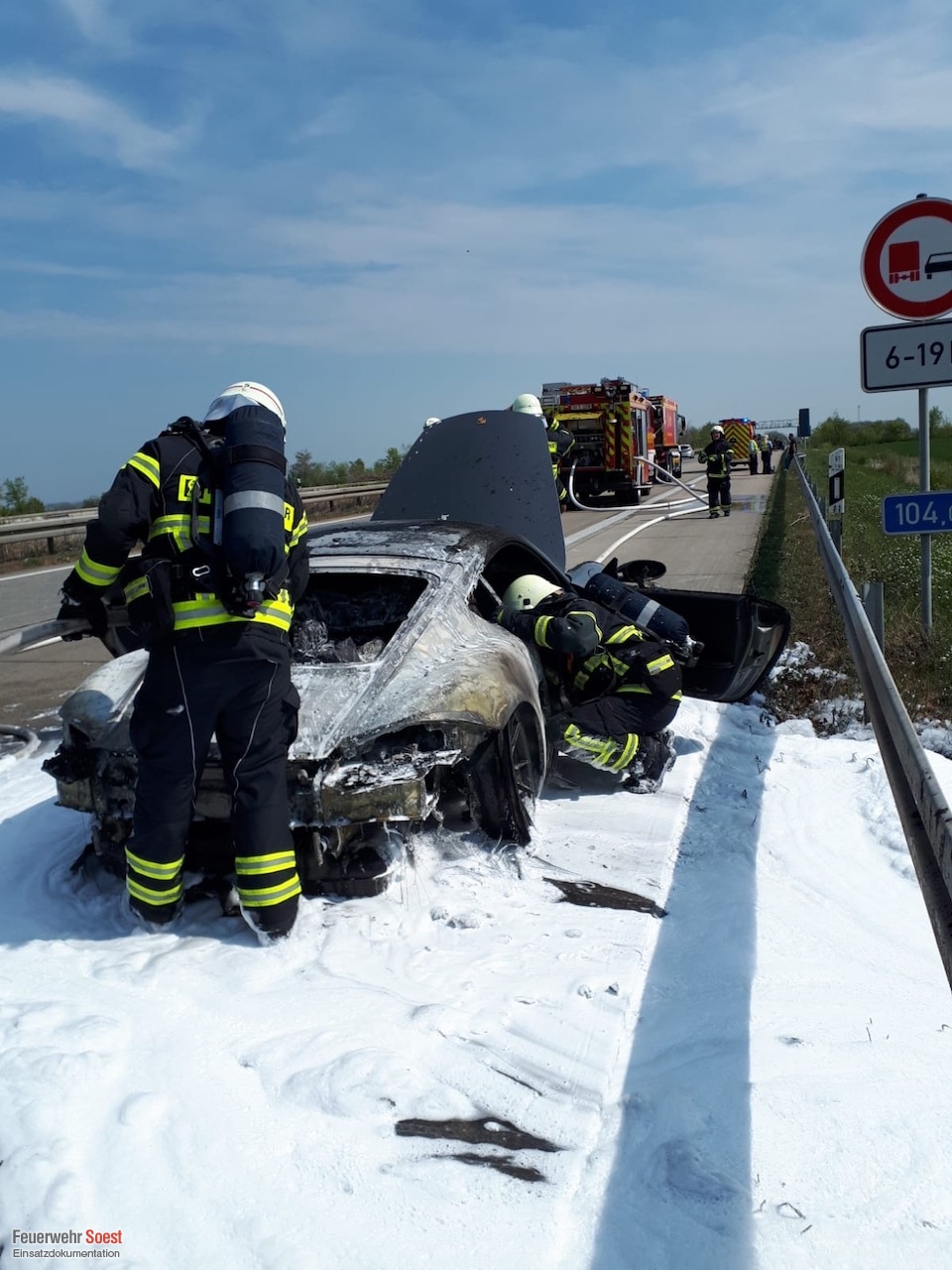 Ein brennender Sportwagen wurde mit einem C-Rohr und Schaummittelbeimischung gelöscht.