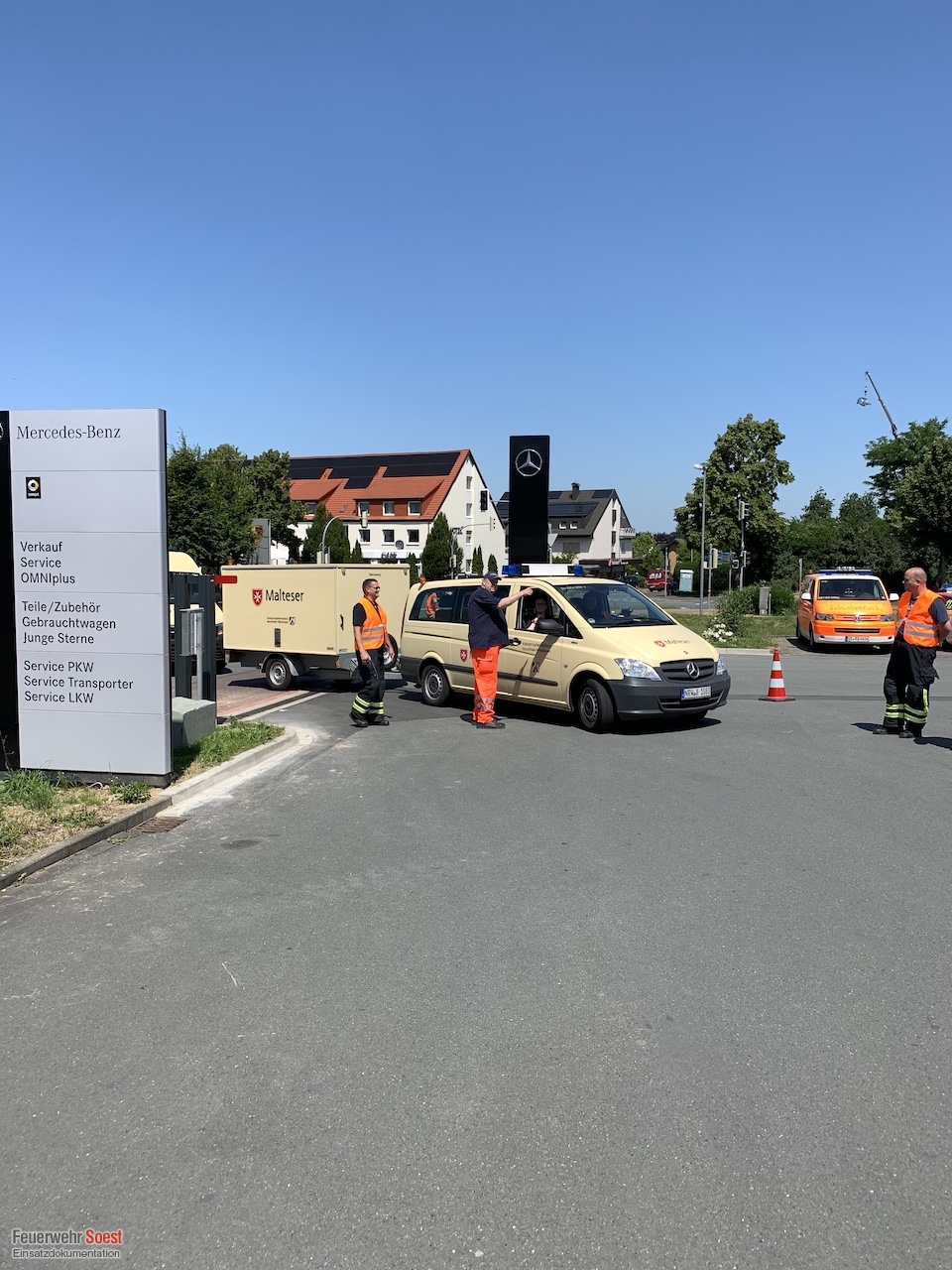 Nach einem Verkehrsunfall auf der BAB 44 in Werl kam es zu einem längeren Stau. Aufgrund der hohen Außentemperaturen wurden mehrere Betreuungseinheiten der Hilfsorganisationen aus dem ganzen Kreis Soest alarmiert. Diese sollten die wartenden Autofahrer mit Getränken versorgen. Um so einen Einsatz zu koordinieren, treffen sich vorerst alle alarmierten Einheiten in einem sogenannten Bereitstellungsraum. Dieser Bereitstellungsraum wurde in Soest eingerichtet und wir sollten dessen Führung übernehmen. Da der Verkehr dann allerdings abfließen konnte, mussten die Betreuungseinheiten nicht mehr aktiv werden.
