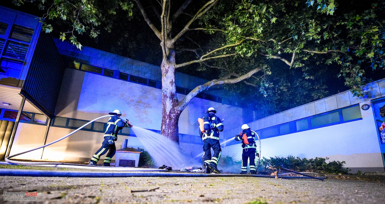 Eine brennende Mülltonne und das angrenzende Gebüsch wurde mittels Schnellangriff abgelöscht.