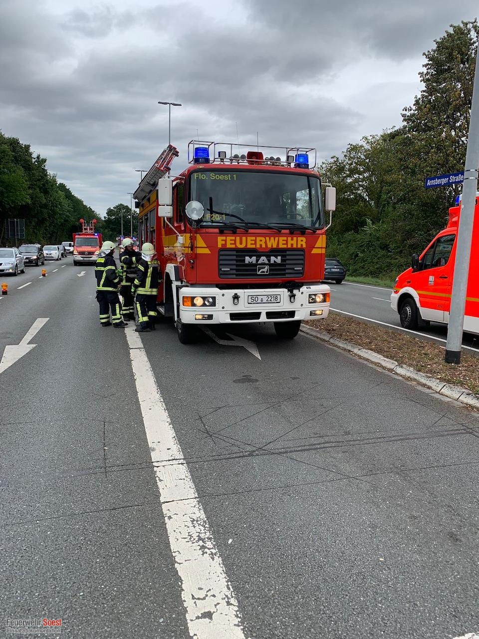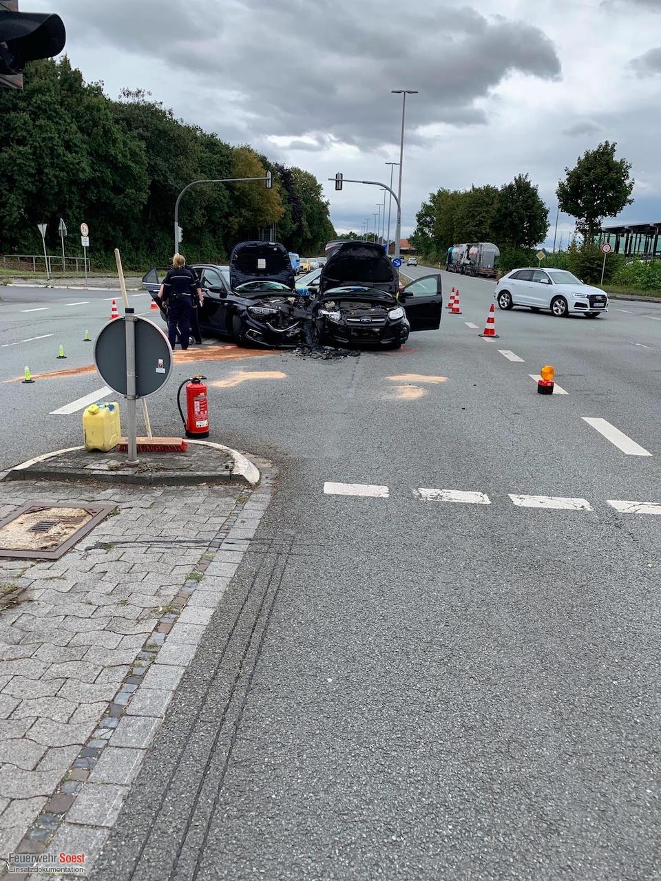 Wir wurden heute zu einem Verkehrsunfall auf der Arnsberger Straße alarmiert. Bei Eintreffen der ersten Einsatzkräfte waren bereits alle Personen aus den am Unfall beteiligten Pkw befreit und wurden rettungsdienstlich erstversorgt. Unsere Maßnahmen beschränkten sich auf das Absichern der Einsatzstelle, die Sicherstellung des Brandschutzes sowie das Auffangen von auslaufenden Betriebsmitteln.